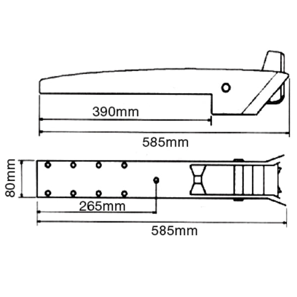 Med en kapacitet för ankarstorlekar mellan 10-20 kg är denna ankarrulle perfekt för både fritids- och sportfiske. Dess kompakta mått, med en bredd på 80 mm och en längd på 585 mm, gör installationen enkel och effektiv.