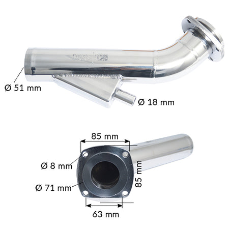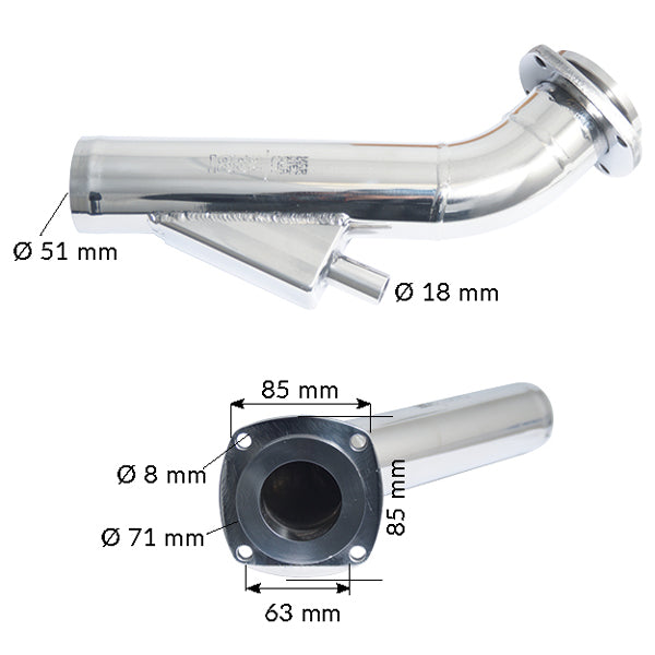 Tillverkad av rostfritt stål, erbjuder denna böj hög motståndskraft mot korrosion och slitage. Med en längd på 285 mm och diametrar på 18/51 mm passar den perfekt till din Bukh DV36, vilket gör installationen enkel och smidig.