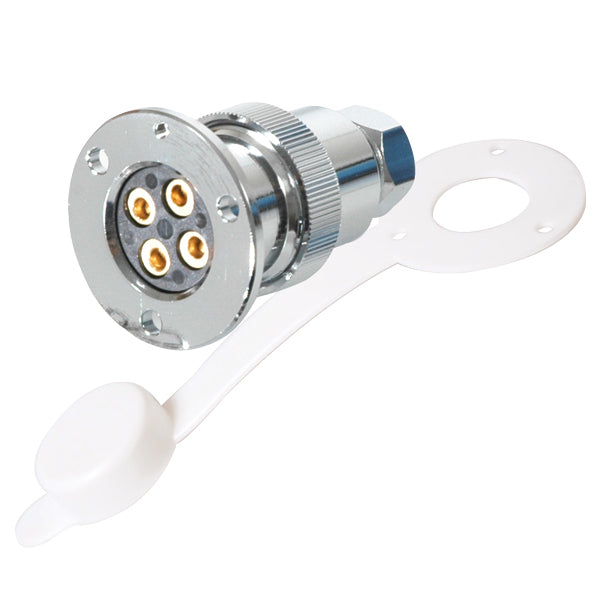 1852, Däckkontakt 4-polig, 3 Amp, 12V, förkromad mässing med packning och plastlock