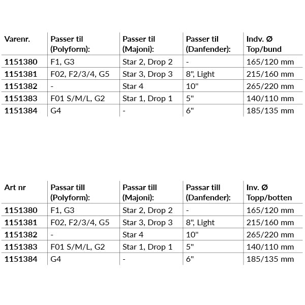 - Passer til: Danfender 8'' Light, Polyform(F02, F2/3/4, G5), Majoni/Talamex(Star 3, Drop 3)