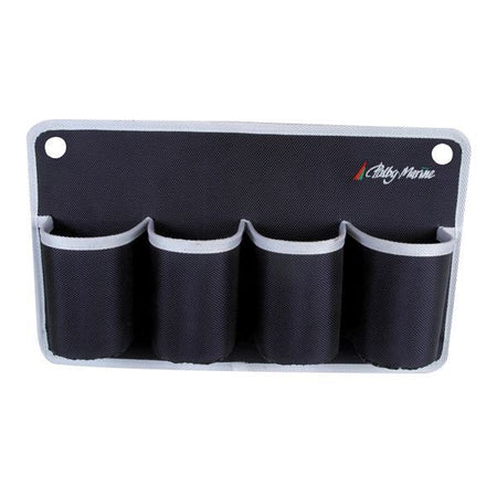 Flask- och burkhållaren från 1852 erbjuder en smart och funktionell lösning för att organisera dina drycker på båten. Den är designad för att enkelt monteras på sögeländeret och har fyra fack som gör det enkelt att hålla ordning på flaskor och burkar under dina vattenäventyr.