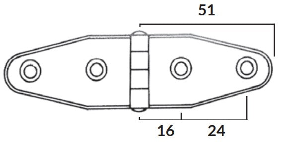 1852, Gångjärn RF, AISI 316, högpolerad, 105 x 28 mm