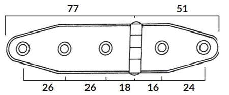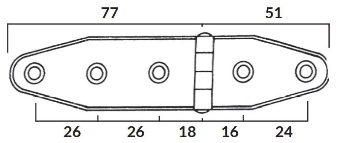 1852, Gångjärn RF, AISI 316, 130 x 28 mm, Spegelblank