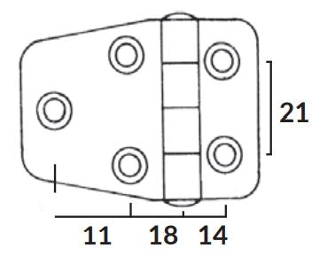 1852, Gångjärn RF, 56 x 38 mm, Rostfritt stål, AISI 316, Högpolerat