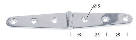 1852, Gjutet gångjärn, 26x154 mm, AISI 316, Högkvalitativ finish