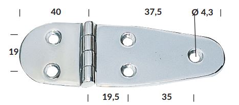 1852, Gjuten gångjärn RF, 38,5x107,5 mm, AISI 316
