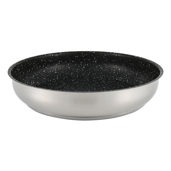 Tillverkat av rostfritt stål med en non-stick beläggning, säkerställer detta set att maten inte fastnar och gör rengöringen enkel. Den induktionskompatibla botten gör att det passar på alla typer av spisar, inklusive gas. Med ett smart och platsbesparande design kan alla delar staplas, vilket gör förvaring smidig.