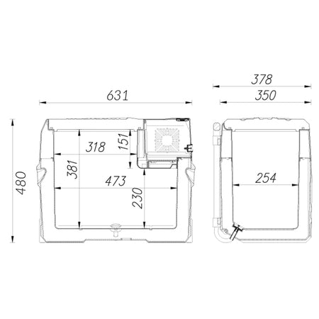 - Dimensioner: Bredde: 37,8 cm, Højde: 48,0 cm, Længde: 63,1 cm