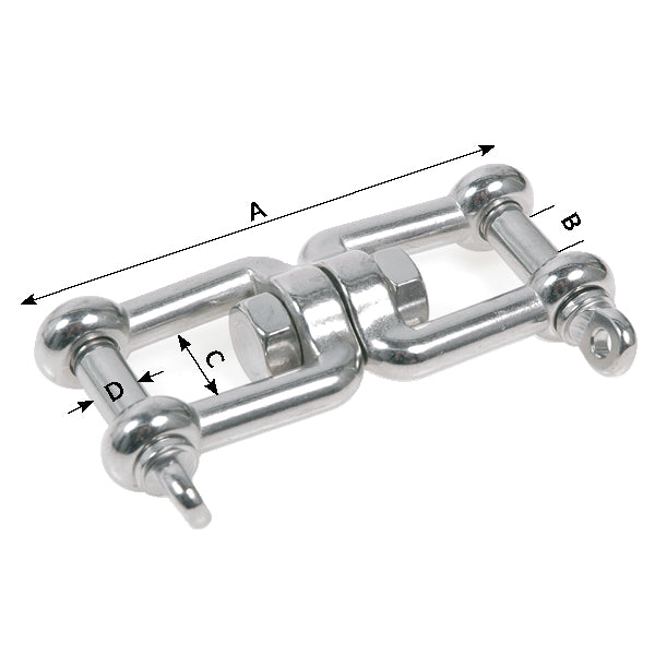 1852, roterande gaffel RF, rostfritt stål, M6, 66mm A, 12mm B, 11mm C, 6mm D