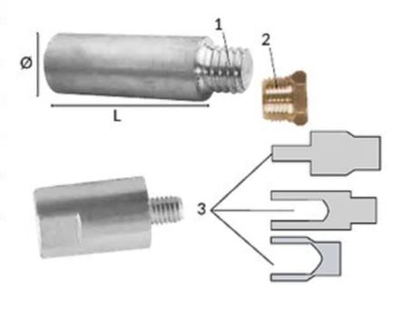 1852, Lombardini motor zinkanod, Ø 10 mm, Gänga Ø 8,5 mm, Längd 18 mm, Originalnr. 90802150