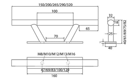 1852, Pollare, Rostfritt stål, 320mm, Gänga 16mm, Hålavstånd 120mm