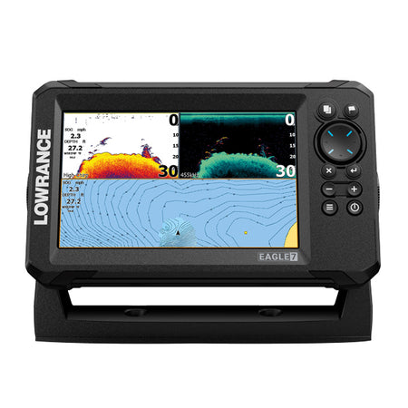Utrustad med en SplitShot HD-transducer, kombinerar Lowrance Eagle 7 vidvinkel CHIRP-ekolod med DownScan Imaging för att ge dig det bästa översikten över undervattensmiljön. Med en rad användbara funktioner och detaljerad kartläggning är denna fishfinder ett måste på varje fisketur.