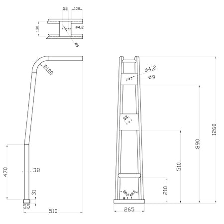 1852, Tara-grind, Justerbar, Svart AISI 316, 145-230 cm, 126 cm