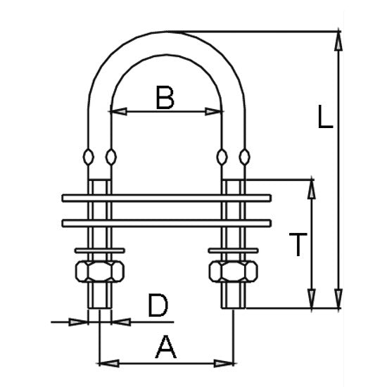 1852, U-fäste, Ø8x50mm, invändig bredd 25mm, längd 90mm, rostfritt stål