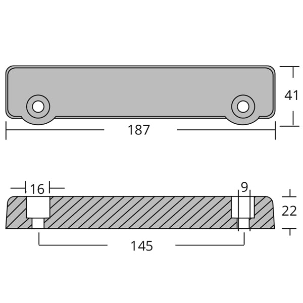 1852, Zinkanod Volvo AQ-drivning, Passar AQ 250/270/275/275/280/285, Originalnr 832598, 41 mm bred, 187 mm lång