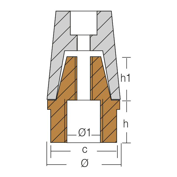 1852, Zinkanod med mässingsmutter (Tidigare 1141475) 35mm.