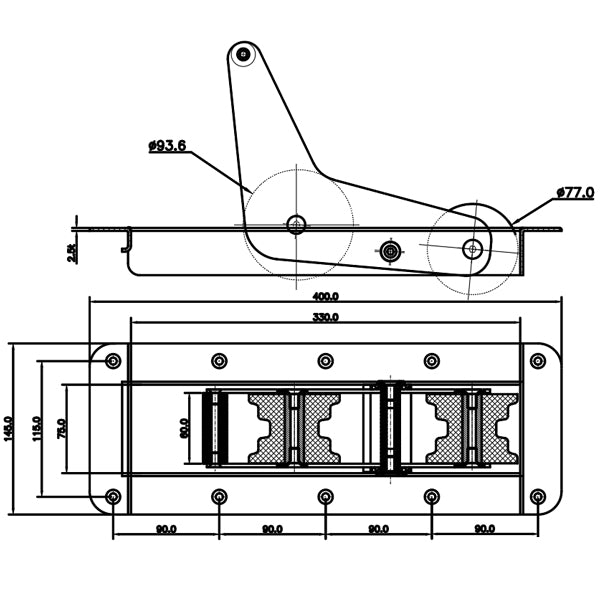 SeaTec, Ankarrulle RF, rostfritt stål, nedsänkt, 15 kg kapacitet, 145 mm bred, 400 mm lång