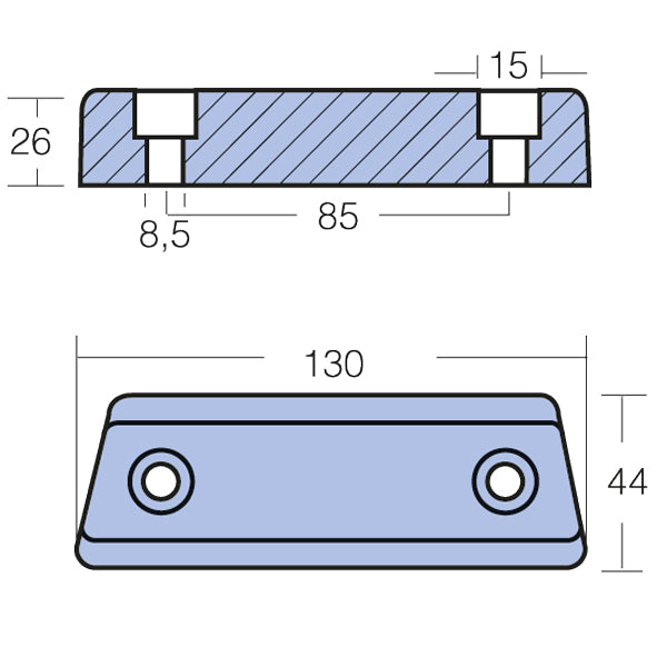 Tecnoseal, Aq-drive Anode, Zink, Passar Volvo Drive 290 Duo Prop, 0,76 kg, 132 mm x 46 mm x 25 mm, 86 mm hålavstånd