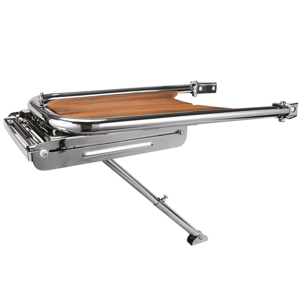 Plattformen innehåller ett universalfäste som gör installationen enkel och passar de flesta båtar. Den medföljande stegen ger extra säkerhet så att du kan känna dig trygg när du använder plattformen.