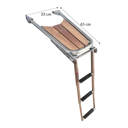 Bågplattform med stege, 65x33cm, AISI 316 rostfritt stål, 3 steg, Ø: 25,0 mm