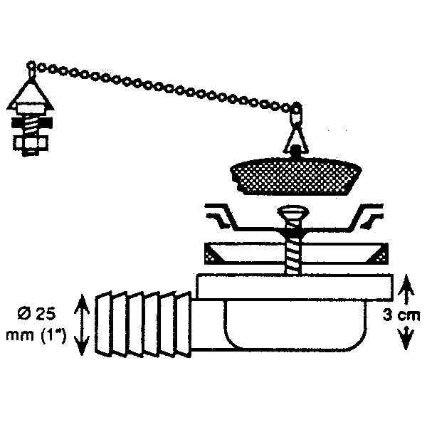 Barka, Bottenfäste komplett vinkelavlopp, Ø 25 mm