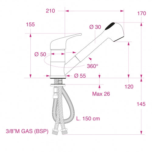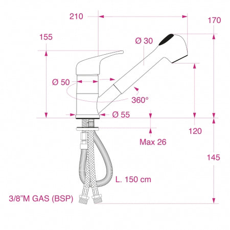 Barka MD6551 är tillverkad av forkromad mässing, vilket garanterar lång hållbarhet och en stilren finish. Den exklusiva ettgreppsdesignen ger enkel åtkomst till både kallt och varmt vatten, medan den utdragbara duschen med justerbar stråle erbjuder ytterligare flexibilitet i din dagliga rutin.