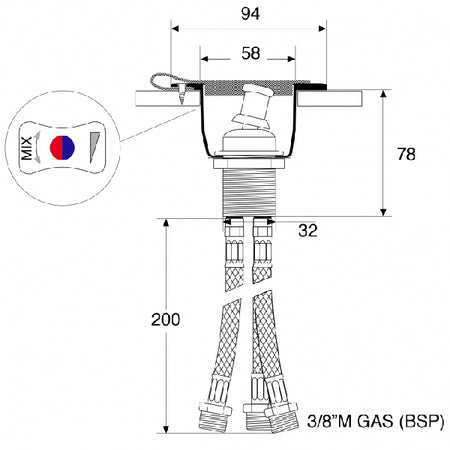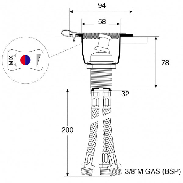 Med ett hålmått på 58 mm passar det de flesta standardinstallationer, och det BSP 3/8" gänga säkerställer en säker och tät anslutning.