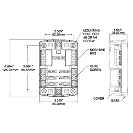 Blue Sea Systems, Kompakt säkringshållare för 6 st ATO/ATC-säkringar med minusskena, 30 A, 100 A, 84,2 mm x 124,3 mm