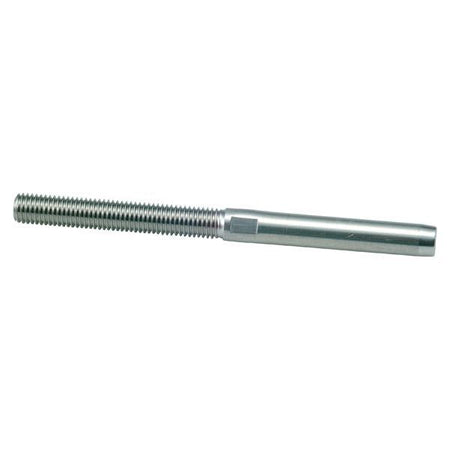 Tillverkad av rostfritt stål är denna gängterminal både hållbar och motståndskraftig mot väderpåverkan. Den rullas fast kring stålwiren, vilket garanterar en solid förbindelse till ankringspunkter och stabilisering av konstruktioner som master och båtar.