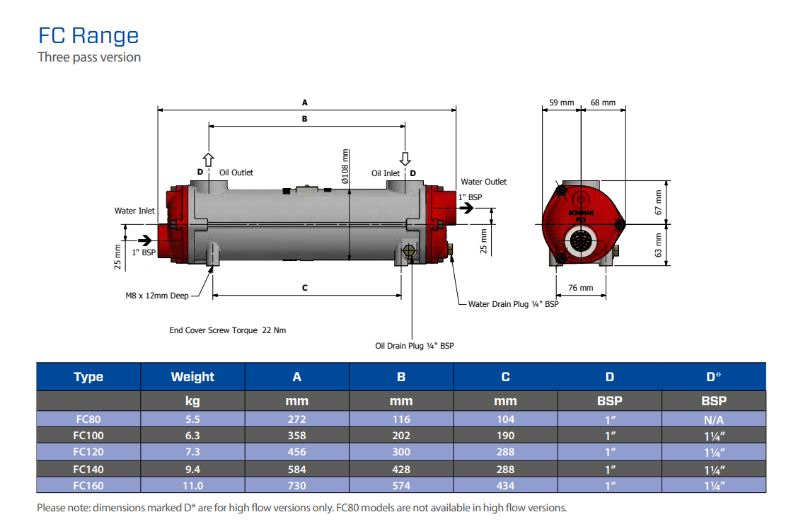 Oljekylare bowman fc 120 1" olja, vatten 58 mm