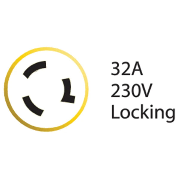 Observera att den blå CEE-kontakten (32A) är större än en 16A-kontakt.