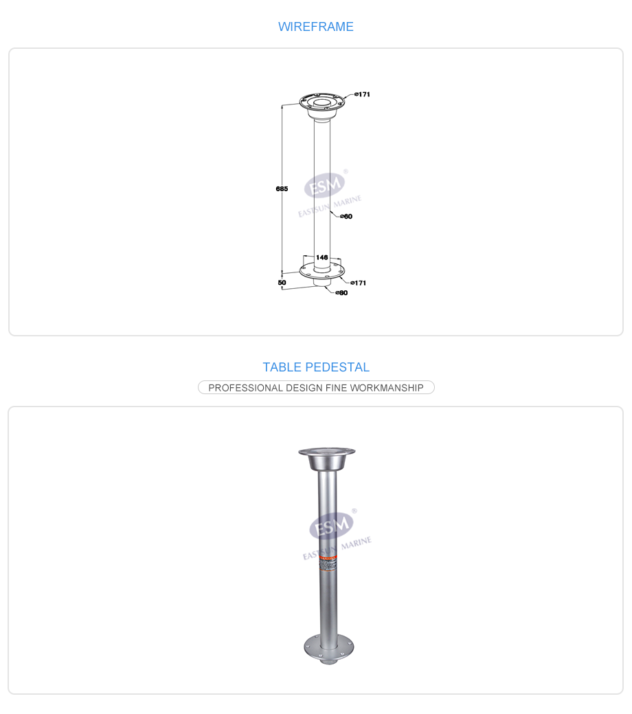 Upptäck den flyttbara bordsöjlen från ESM, designad för att ge maximal flexibilitet i ditt arbetsområde. Med en höjd på 685 mm och en diameter på 178 mm, är denna bordsöjle perfekt för bord av storlek upp till 1 x 1 meter. Den nedfällda basen kräver endast 6 cm utrymme under däck, vilket gör installationen enkel och platsbesparande.