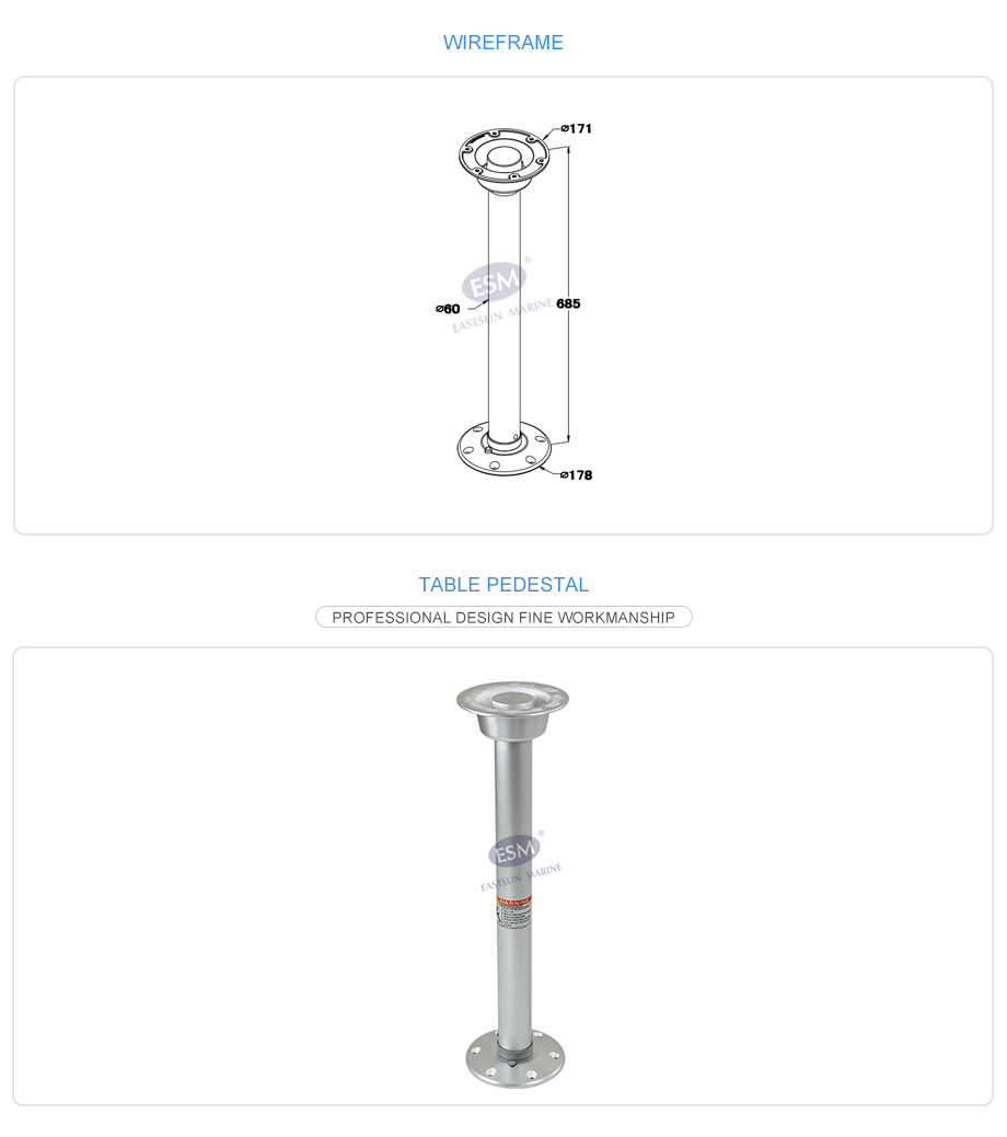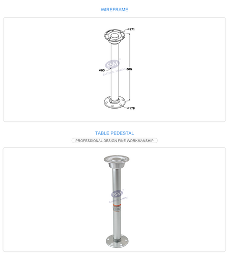 ESM, Bordskolonn BSF70, Flyttbar, H:685 mm, 360º Rotation, Ø: 60 mm, Bas Ø: 178 mm