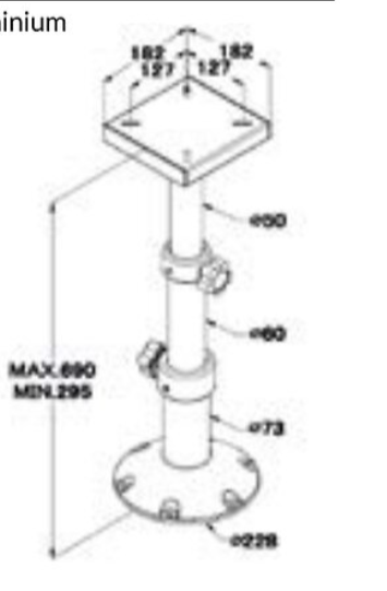 ESM, Justerbar bordsstolpe, aluminium, höjd 290-690 mm, bas 228 mm