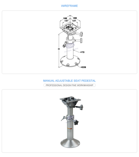 Den kompakta stolskonsolen med svängfunktion ger möjlighet att justera höjden mellan 43 och 63 cm, så att du kan hitta den mest bekväma positionen. Den robusta basen med en diameter på 23 cm säkerställer stabilitet, medan den eleganta finishen i anodiserad aluminium ger ett modernt intryck till din båt.