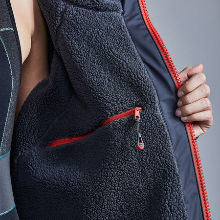 Aqua Parka är avsiktligt överdimensionerad. Den är designad för att vara tillräckligt rymlig för att du ska kunna dra in armarna för att byta om. Med ett helt vattentätt skal och full 4-vägsstretch är Aqua Parka idealiskt för ombyte i alla väder. Det luftiga fodret leder inte bara bort vatten och fukt från huden, utan håller dig varm även när parkan bärs ovanpå blöta kläder eller en våtdräkt. Perfekt även när du vill ta en värmande paus i blåsten. Fullängdsärmar med justerbara ärmslut och generös passform i kombination med tvåvägs YKK-dragkedjan gör så att du enkelt kan byta var som helst! Parkan har flera förvaringsfickor - Två ytterfickor med dragkedja, en intern ficka med dragkedja för dina värdesaker och en stor intern ficka för att rymma andra föremål. 1) Svetsad sömmar för en permanent vattentäthet 2) Termiskt fleecefoder, som håller dig varm även när jackan bärs ovanpå våta kläder 3) 2-vägs dragkedja 4) Värmande fleecefickor 5) Stor invändig förvaringsficka 6) Justerbara ärmar 7) Innerficka med dragkedja Unik Aqua Parka utvecklad med maximalt skydd och komfort i åtanke. · Vattentätt, andningsbart och vindtätt skyddande skal · Lång och generös passform – gör att du enkelt och bekvämt kan byta om under jackan. · Tyget har 4-vägsstretch, för full komfort Material: · 100% PolyesterSpecifikationer