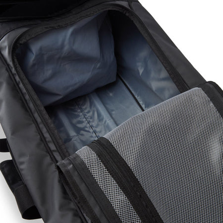 Väskan är tillverkad av robust polyester och PVC tarpaulin, vilket gör att den kan motstå de utmaningar som resor kan medföra. Den rymliga konstruktionen med en U-formad dragkedjeöppning ger enkel åtkomst till dina saker, medan de ventilerade facken håller dina seglarskor fräscha.
