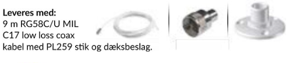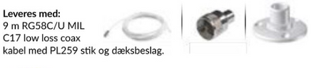 - Kabel: 9 m RG58C/U MIL C17 low loss coax