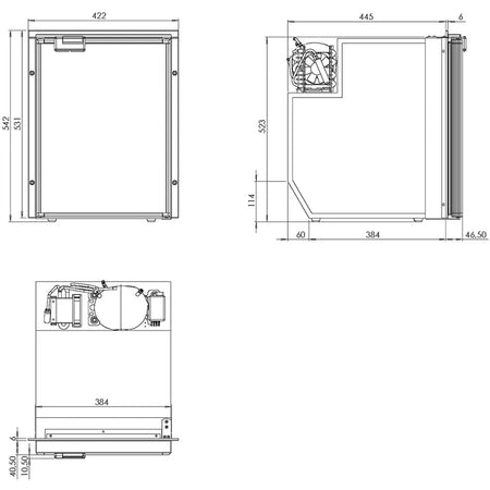 Du får bland annat: 12/24 V Danfoss/Secop-kompressor, invändig frys och dörr med säkerhetslås och magnetlist. Cruise Classic 49 kylskåp med samma "standard"-yttermått som CR 42, bara lite djupare. Volymen är 49 liter med ett 4 L frysfack. Fast kompressor med fläkt på baksidan, som är diagonalt skuren för att följa skrovets form. Med invändig LED-belysning. Obs: Monteringsramar är extra tillbehör. Isotherm kyl- och frysprodukter är resultatet av många års noggrann forskning och utveckling, och kombinerar teknisk innovation med elegant och praktisk design.Specifikationer