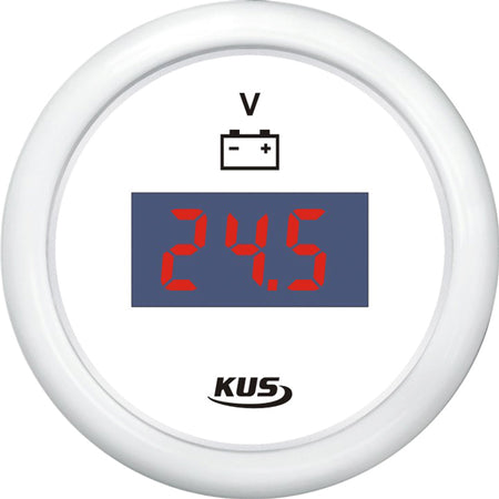 Kus, Digital Voltmeter 9-32V, Vit, IP67, Ø52 mm