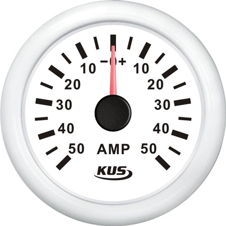 Kus, amperemeter vit, 50Amp shunt, IP67, 12/24V, Ø 52,0 mm