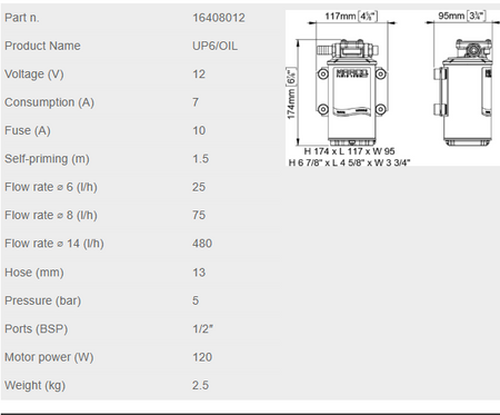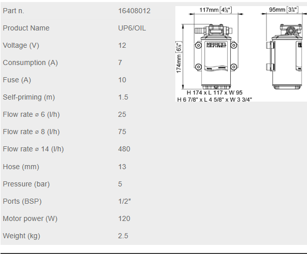 Marco, Elektrisk oljepump Proff, 12V, 480 l/tim, Bronch Kugghjul