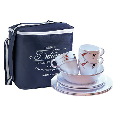 Med Marine Business Regatta service set får du ett stilrent och praktiskt 16-delat set som passar perfekt till både vardag och fest. Oavsett om du är inomhus eller utomhus, kommer det smarta designen med non-slip ring att säkerställa att allt hålls på plats, även när det blåser.