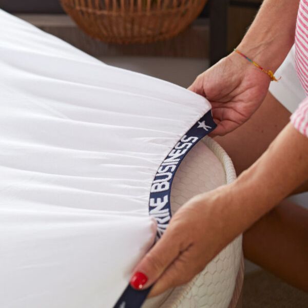 Den høje bomuldsandel gør lagnet særligt velegnet til livet på båden, da det ikke genererer varme og sikrer god luftcirkulation. Den elastiske kant gør det nemt at montere lagnet, og det holder sig på plads uanset bevægelser i båden.