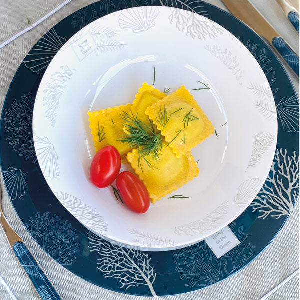Elegante marineinspirerede tallerkener til stilfuld servering