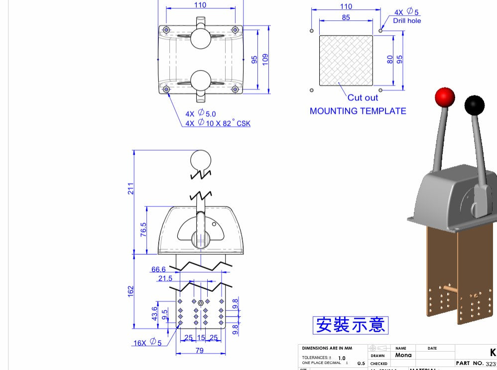 - Funktion: Enkel funktionslåda med separata handtag för gas och växel