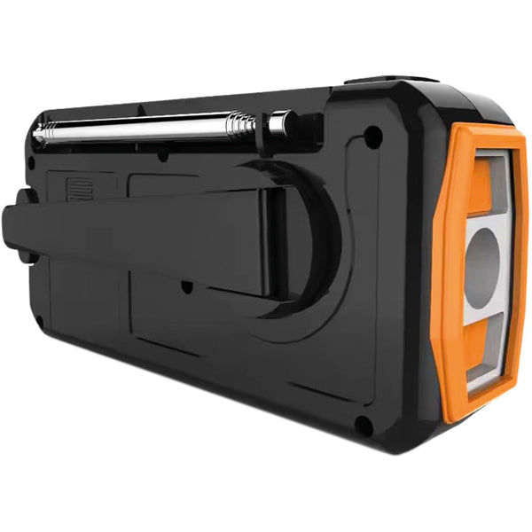 Radioen fungerer som en komplet nødløsning med integreret 5000 mAh batteri, der både kan drive radioen og fungere som powerbank til opladning af mobiltelefoner. Den kraftige LED-lygte på 400 lumen sikrer god belysning, mens det separate læselys giver ekstra funktionalitet.