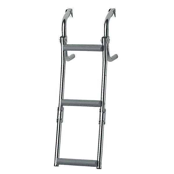 Stigen är utrustad med ett vippebeslag i toppen och en justerbar fot, vilket gör installationen flexibel och enkel. Den kan även fällas ihop på mitten för smidig förvaring. Det övre fästet kan bytas ut mot ett hängfäste, vilket möjliggör snabb avmontering. Badstegen har genomgått tester i en saltvattensimulator för att säkerställa att den klarar av de utmaningar som marina miljöer medför.