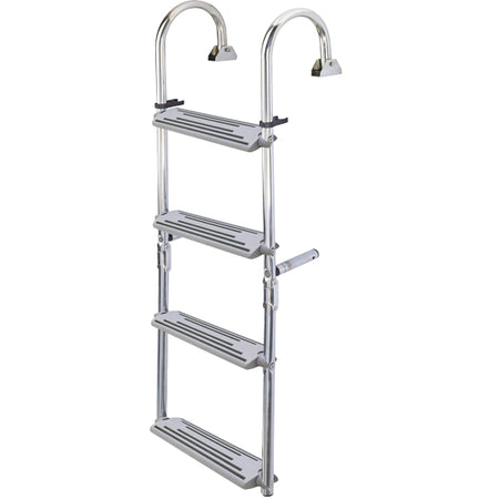 Badstegen är tillverkad av polerat AISI 316 rostfritt stål, vilket ger enastående motståndskraft mot marina miljöer. De hopfällbara stegen i polypropylen gör att stigen kan förvaras kompakt när den inte används, medan de justerbara stegen möjliggör optimal anpassning till olika vattenstånd.