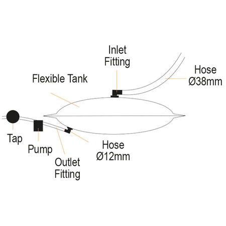 - Fittings: Påfyllning 38 mm, avlopp 12 mm